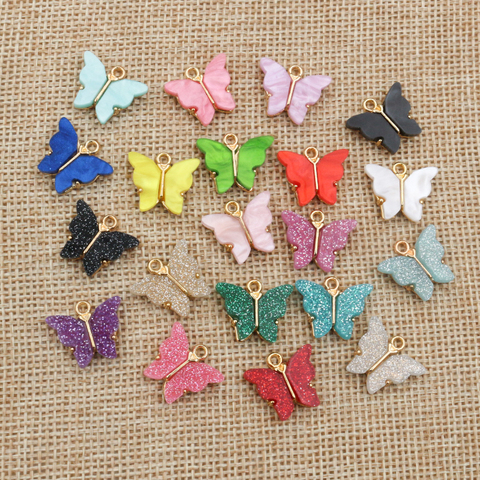 10pcs 14x16mm एक्रिलिक तितली आकर्षण मिश्र धातु धातु आकर्षण लटकन के लिए हार कंगन DIY के आभूषण बनाने सामान निष्कर्ष
