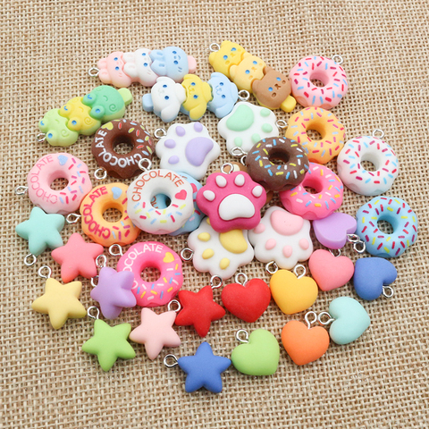 10 ชิ้นสุ่มสีผสมดาวหัวใจเค้ก Charms เรซิ่นแวววาวน่ารักสร้อยคอพวงกุญแจจี้ DIY พวงกุญแจทําอุปกรณ์เสริม